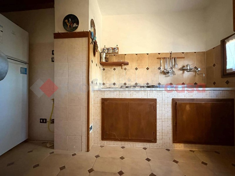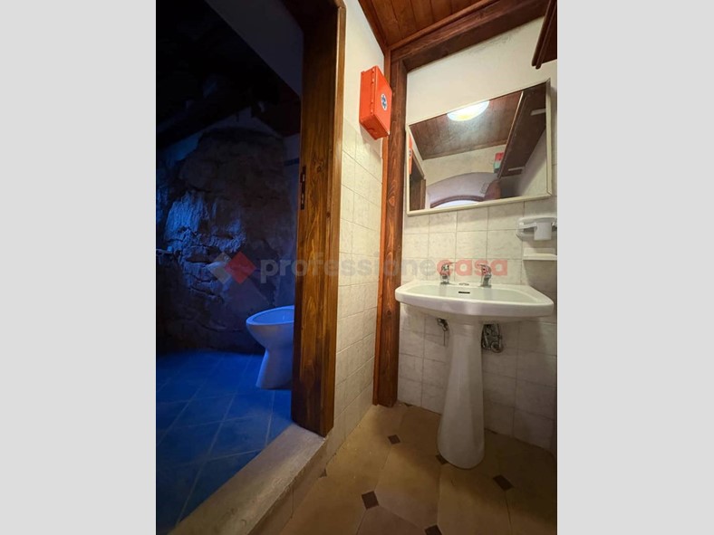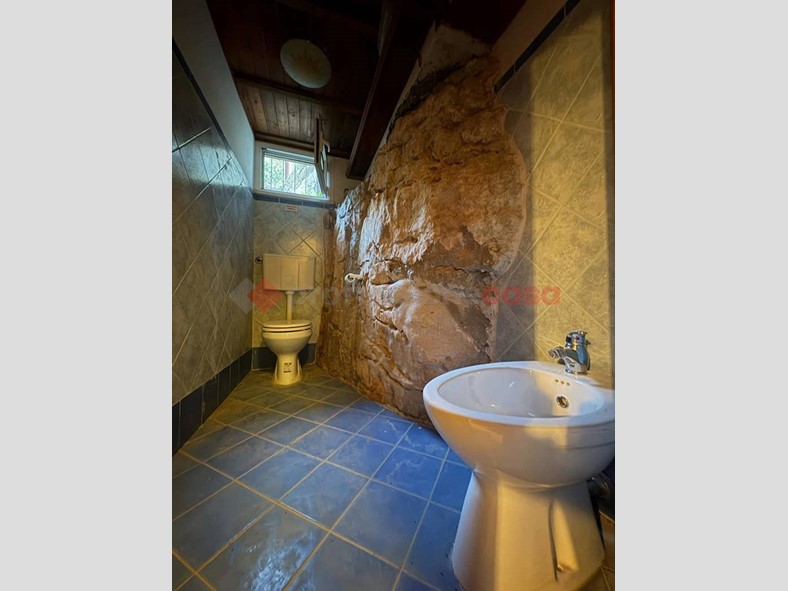 La casa all'interno ha una superficie di 80 mq. e si dispone su due livelli, al piano terra vi è una grande sala da pranzo arricchita da un meraviglioso camino a legna, una cucina in muratura ed un bagno ricavato nella pietra viva con antibagno.