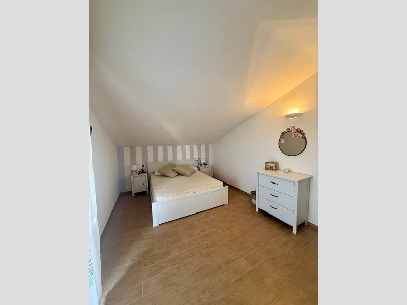 L'immobile è così composto: al piano terra zona giorno con angolo cottura, bagno di servizio, living, zona pranzo con affaccio al giardino privato. Piano primo composto da 2 camere matrimoniali e bagno finestrato con doccia. Mansarda con letto matrimoniale e letto singolo. Fino a 7 posti letto. Ogni camera ha il suo balcone. Si accettano animali domestici.