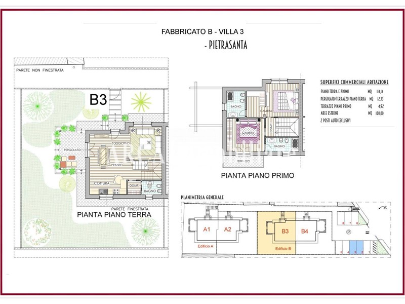 – Pergolato/Terrazza Piano Terra mq 12.33 - Terrazza Piano Primo mq 4,92