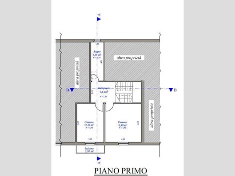 • Piano primo: Grande disimpegno, camera matrimoniale, altra camera con balcone, bagno finestrato e soffitta non praticabile (accessibile tramite botola nel bagno).
