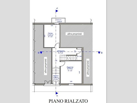 • Piano terreno-rialzato: Ampio ingresso-disimpegno, soggiorno, cucina con balcone sul retro e vano scala per l’accesso ai piani superiori e seminterrato.