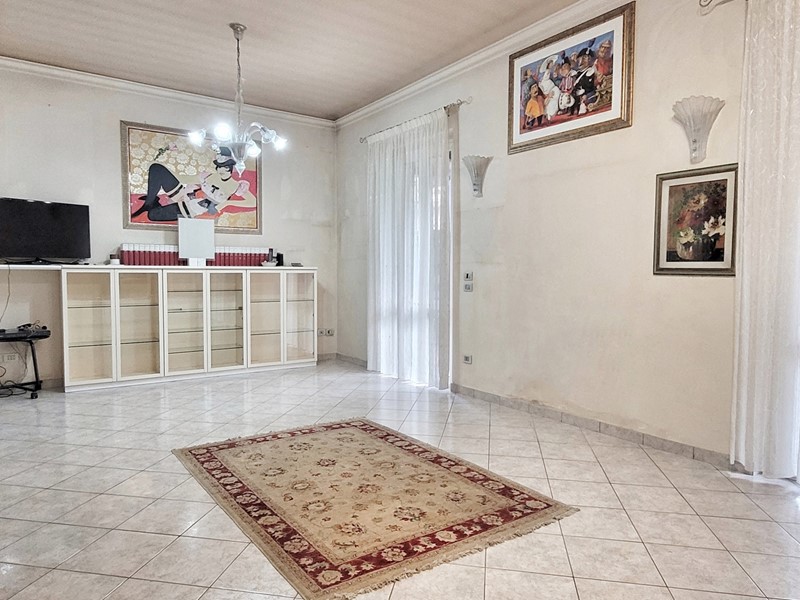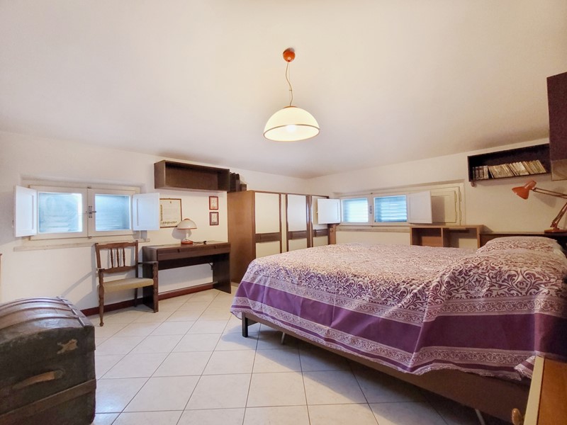 La casa libera su tutti e quattro i lati, si sviluppa su tre livelli, per un totale di circa 283 mq, in particolare piano terra di circa 87 mq organizzato in un ampio salone con due porte finestra che affacciano direttamente sul giardino, un cucinino separato, una camera da letto matrimoniale con bagno in camera finestrato, un corridoio con antibagno e bagno cieco con areazione. Dal corridoio si accede anche alla scala di collegamento ai piani superiori.