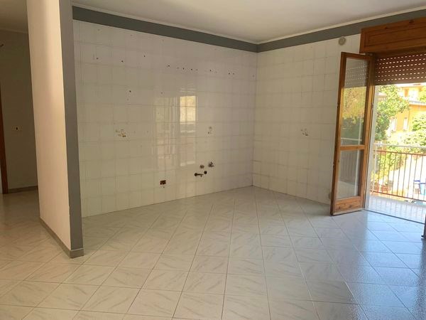 Ampio salone open space con penisola attrezzata che divide la zona living dalla cucina. Il salone, dotato di due balconi e una finestra, è luminoso e spazioso, perfetto per essere arredato con divano, parete attrezzata e mobili a piacere.