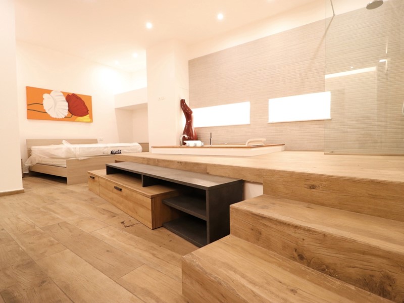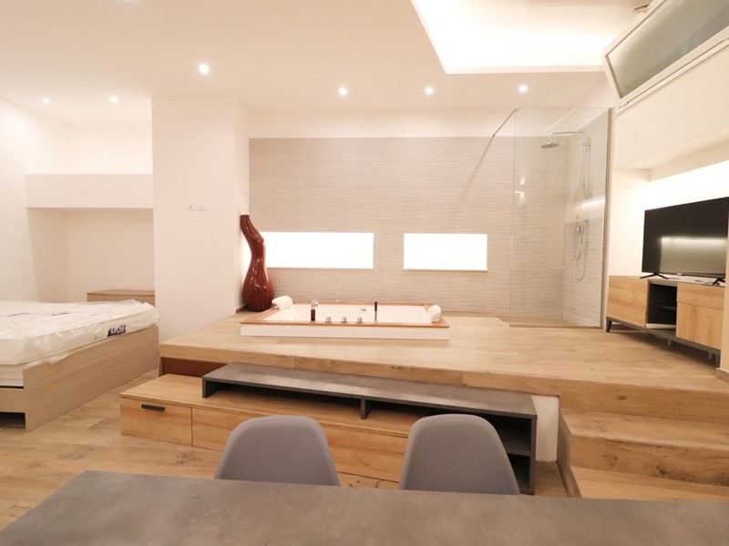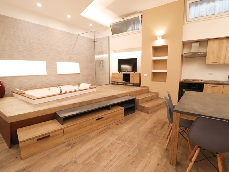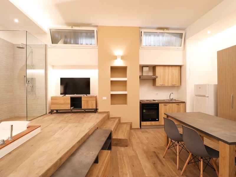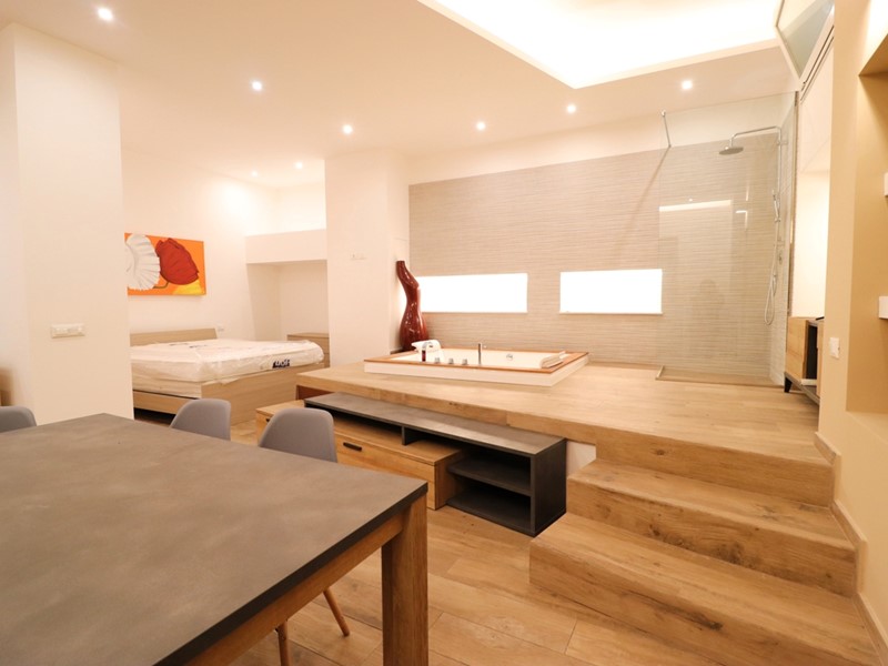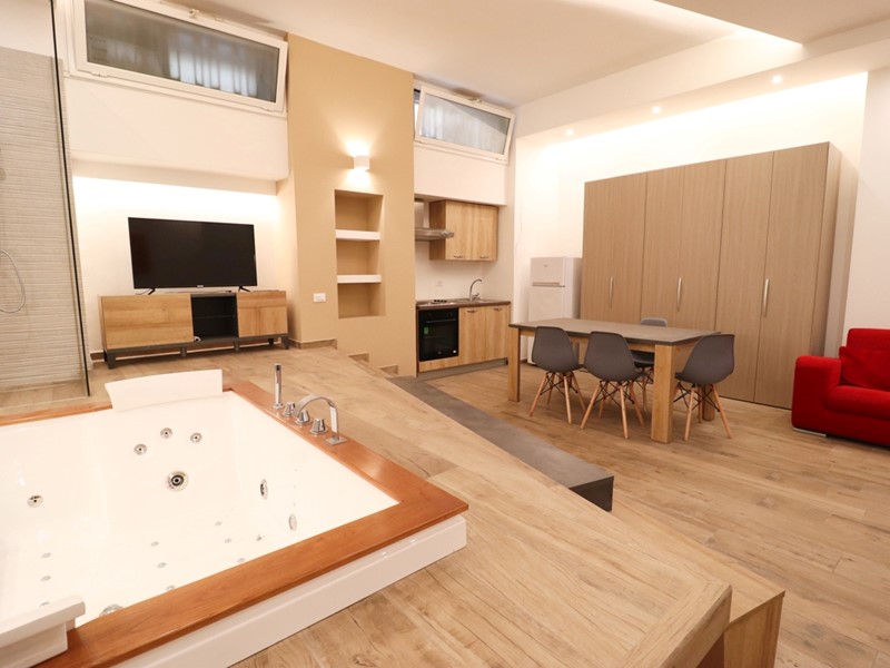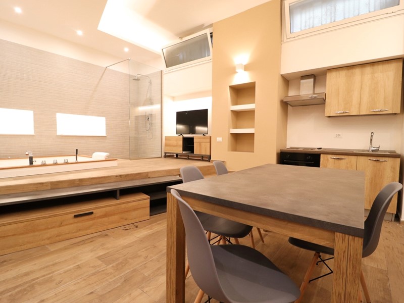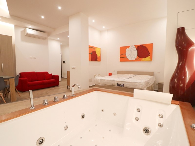 E' posto al seminterrato in stabile ben tenuto con servizio di portierato e ascensore, l'immobile è composto da un unico ambiente con cucina a vista, camera matrimoniale, zona spa con vasca idromassaggio e doccia e bagno con secondo box doccia. I soffitti sono alti.