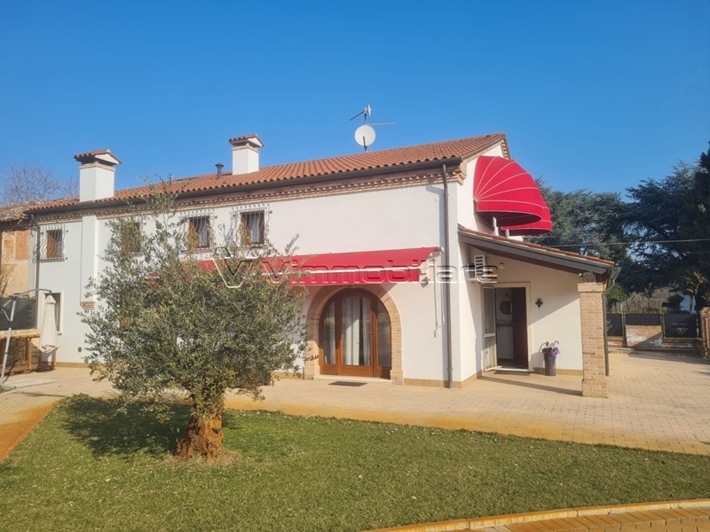 POJANA MAGGIORE: in posizione tranquilla e situata ad un km dal centro del paese, proponiamo esclusivo immobile completamente indipendente di 320 mq. comm. La proprietà si sviluppa in 2 abitazioni ristrutturate interamente nel 2004. L'alloggio principale è realizzato su 2 livelli e composto da: portico, ingresso, grande e luminosa zona giorno comunicante tramite una graziosa arcata alla cucina abitabile per un totale di 65 mq., 4 camere di varie dimensioni al primo piano, studio, 4 bagni (uno al piano terra) tutti finestrati con doccia e uno con vasca, ampi disimpegni e ripostiglio. Dotato di riscaldamento a pavimento. Per quanto riguarda l'altra unità si tratta di un appartamento sviluppato al piano terra e composto da: ampia zona giorno, cucina, camera matrimoniale e bagno (con possibilità di creare una seconda camera singola). Esternamente troviamo giardino di circa 2900 mq. tenuto in modo perfetto, pozzo per irrigazione e porticato di 50 mq. utilizzabile come posti auto. Impianto fotovoltaico su entrambe le unità. Immobile di prestigio curato in maniera impeccabile. Ideale per famiglie numerose le quali vogliono godersi la tranquillità non rinunciando agli ampi spazi sia interni che esterni che offre la proprietà. Classe B. EPgl,nren 73,92 (abitazione principale). Classe B. EPgl,nren 57,16 EPgl, nren (appartamento). Euro 325.000