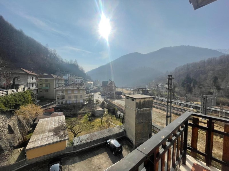 La soluzione, ubicata al piano rialzato del complesso, è composta da: ampio ingresso, tinello e cucinino, camera da letto, bagno e ripostiglio. Completano la soluzione due generosi balconi dai quali si può ammirare una vista sulle montagne e la cantina al piano interrato.