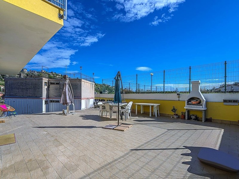 Piano primo di 75 mq suddiviso in: ampio soggiorno, con accesso al terrazzo vista mare di 85mq, una cucina abitabile, anch'essa con accesso al terrazzo e un antibagno che conduce ad un bagno finestrato.
