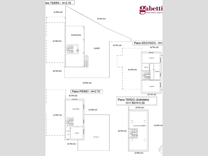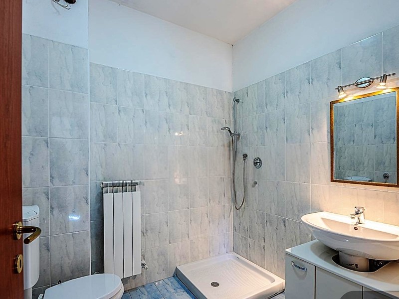 Piano secondo di 75mq suddiviso in: corridoio, due camere da letto entrambe con accesso al balcone di 16mq e due bagni con box doccia. Al piano superiore è presente una mansarda di 70 mq da ristrutturare.