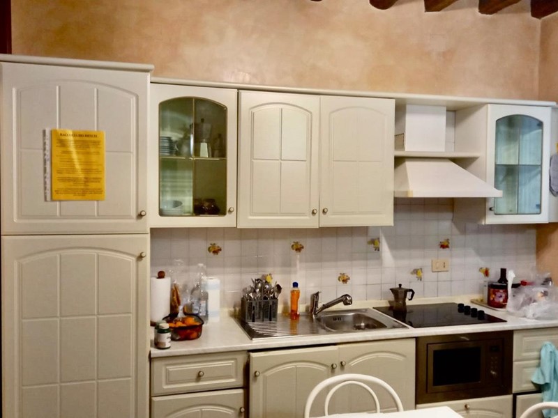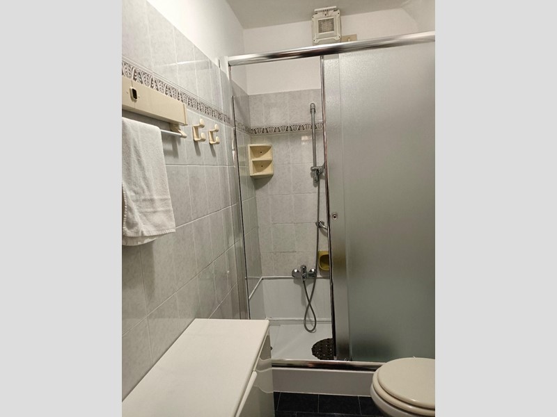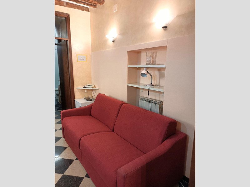 L'appartamento di circa 60 mq si trova al piano rialzato con ingresso indipendente e si compone di una cucina spaziosa e abitabile, completa di tutti gli elettrodomestici necessari: forno, frigo, lavastoviglie, microonde, asse e ferro da stiro, tavolo e 5 sedie. La cucina è separata da una porta a vetri dal salotto, dove si trova un ampio divano letto matrimoniale, un mobile armadio e una TV. Il salotto si affaccia su un disimpegno che conduce a un bagno con doccia, recentemente rinnovato, al posto della vecchia vasca. Dal disimpegno si accede anche alla camera da letto matrimoniale, dotata di comò e armadio a muro, con finestra sul cortile interno.