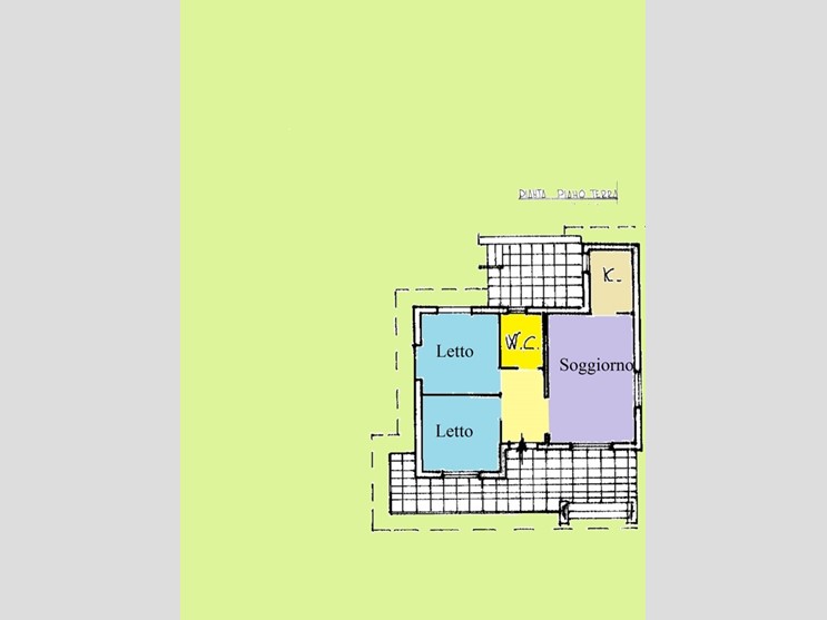 Villa su due livelli da ristrutturare alla Via Chidro Traversa 16 a San Pietro in Bevagna, composta da un piano rialzato con due camere da letto, bagno, disimpegno, soggiorno-pranzo, cucinino e veranda ed al piano in parte interrato da due stanze, bagno, disimpegno,soggiorno, cucinino e garage. Il piano seminterrato è arieggiato e dotato di finestre e porta fuori terra.