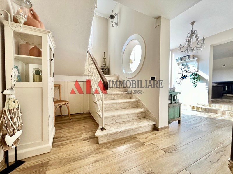 PONTEDERA zona BELLARIA: L'Agenzia Immobiliare AIA propone in vendita una meravigliosa villa recentemente ristrutturata, sviluppata su tre livelli e circondata da un grande giardino esclusivo di circa 700mq. La villa, oggetto di una perfetta ristrutturazione con cura dei dettagli nei minimi particolari, si presenta in perfette condizioni e trasmette, appena varcata la soglia di ingresso, calore e luminosità grazie ai colori dei materiali utilizzati e alle grandi vetrate che caratterizzano tutti e tre i piani dell'abitazione. Il piano terra si compone di ingresso, grande ed accogliente taverna con camino, cucina, bagno, ampio e funzionale ripostiglio/guardaroba, grande garage con zona lavanderia e vano cantina. Al primo primo, raggiungibile mediante sia scala interna sia scala esterna, troviamo la grande zona giorno suddivisa in cucina, zona pranzo e soggiorno, il tutto corredato da due terrazze abitabili; sempre al primo piano troviamo una camera da letto matrimoniale, una cameretta/studio, entrambe con terrazzo, ed un bagno. Al piano superiore il disimpegno distribuisce la zona notte composta da due camere da letto matrimoniali entrambe corredate da terrazza, uno spazioso bagno ed una bellissima terrazza coperta attualmente utilizzata come studio ma ideale per essere trasformata in un bellissimo "giardino d'inverno". La recente ristrutturazione, gli ambienti estremamente luminosi e la cura dei dettagli rendono questa villa una residenza unica e perfetta per chi è alla ricerca di un'abitazione elegante, spaziosa, con ampi spazi esterni, ma senza rinunciare all'immediata vicinanza dei servizi e del centro città. Classe Energ. in attesa di certificazione. €uro 760.000,00 Rif. V22