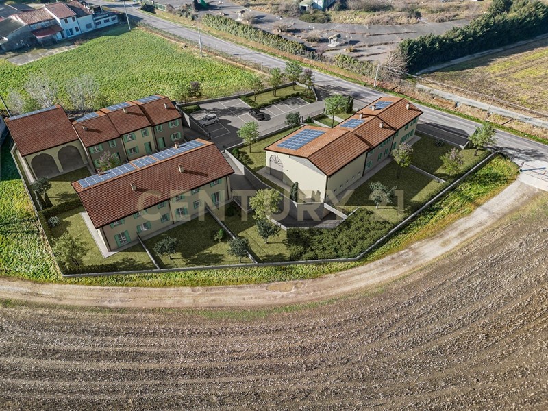 Immersa nel verde della campagna, in contesto di sole 3 unità abitative prenotiamo di prossima realizzazione in vendita NUOVA VILLETTA A SCHIERA ANGOLARE con ingresso indipendente e giardino
