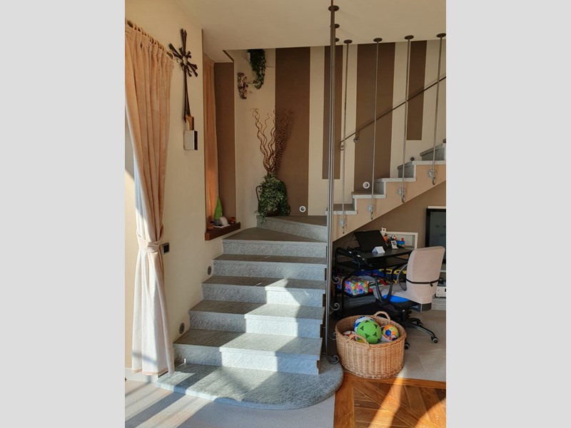 Al piano superiore due camere ed un servizio. Completano la proprietà due posti auto esterni. Il riscaldamento è a pavimento.