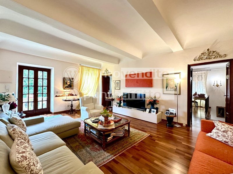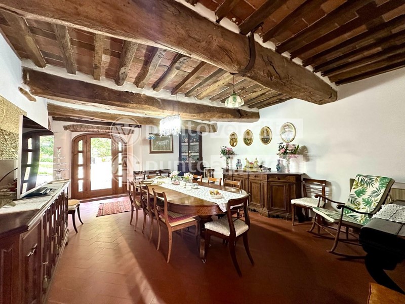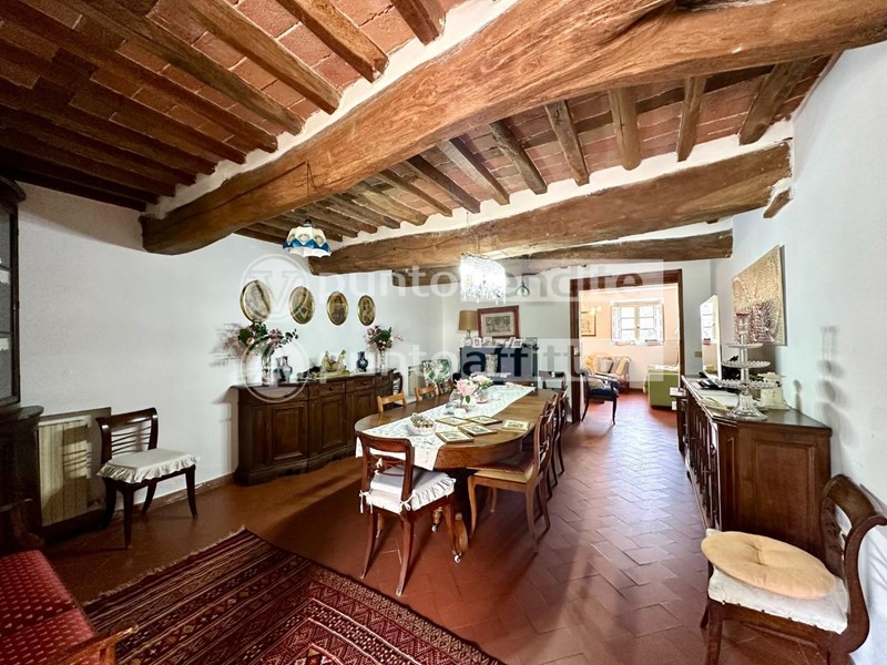 RIF. 9409 - PORZIONE DI VILLA IN VENDITA CON GIARDINO E GARAGE - Nella zona sud di Lucca, a Guamo, a circa 5 km dal centro storico, porzione di villa storica di complessivi 380 mq. Il piano nobile si compone di un ampio salone con camino, sala da pranzo, cucina abitabile, disimpegno notte, due camere matrimoniali, stanza armadi, bagno finestrato con vasca e studio, utilizzabile anche come terza camera. Al piano terra, troviamo un grande salone open space con camino, cucina abitabile con forno a legna e caminetto, due camere, bagno finestrato con doccia e un porticato esterno. L'altezza del piano terra è di 2,50 m ed è regolarmente condonata. I due livelli sono collegati internamente da una comoda scala in pietra, ma dispongono anche di ingressi indipendenti, offrendo così la possibilità di ospitare due nuclei familiari. Completano la proprietà un garage di 50 mq e un giardino recintato di circa 1.300 mq con cancello carrabile automatico. L’immobile si presenta in ottime condizioni di manutenzione. Possibilità di acquistare anche l’unità immobiliare al secondo e ultimo piano, rendendo così l’intera villa completamente indipendente.