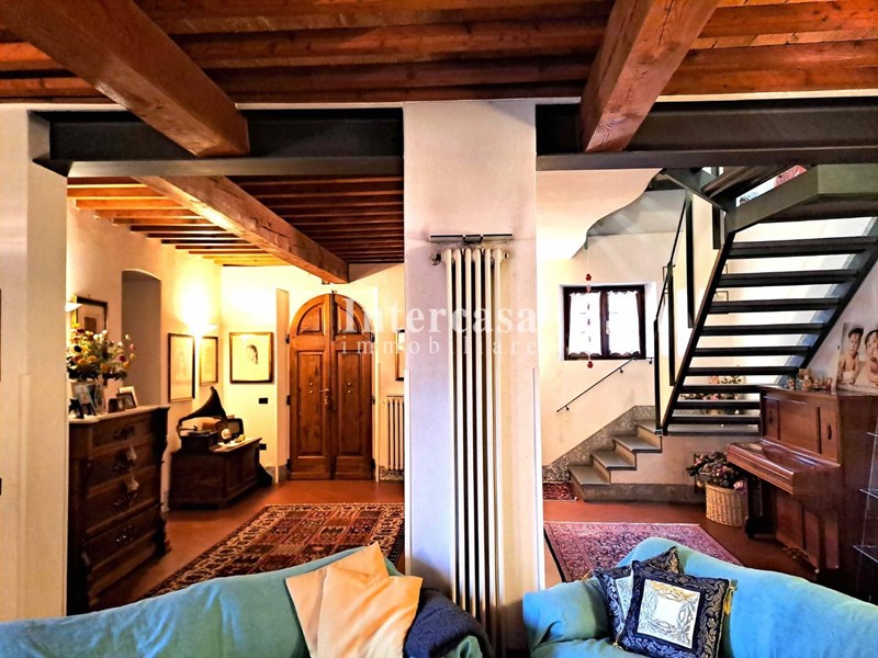 Al piano terra troviamo un ampio soggiorno doppio con camino e bellissima prospettiva di archi e colonne e scala a vista in ferro battuto e vetro, una cucina abitabile, con dispensa e accesso al delizioso resede privato dove trascorrere piacevoli serate all'aperto, un ampio studio con accesso anche esterno. Salendo al piano primo, ci accoglie una spaziosa zona notte composta da due ampie camere da letto di cui una con bagno privato e altro bagno. Il piano mansardato, infine, ospita 3 ulteriori camere, altro bagno e disimpegno che accede a terrazza vivibile con vista sul panorama circostante.