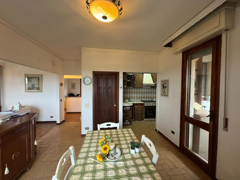 L'ingresso si apre su un accogliente soggiorno, arricchito da un terrazzo privato che offre la possibilità di godere di momenti di relax all'aria aperta. La sala da pranzo, separata e ben organizzata, è dotata di un cucinotto con accesso diretto al secondo terrazzo dell'appartamento.