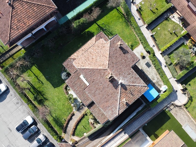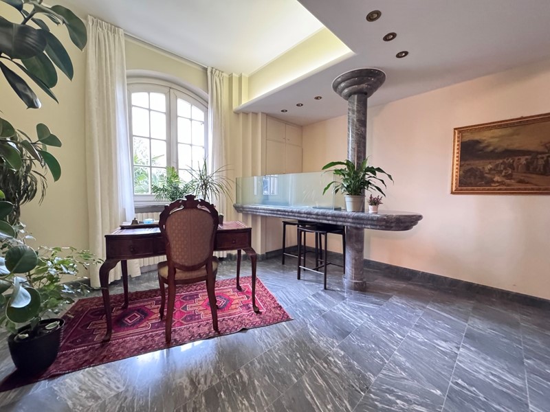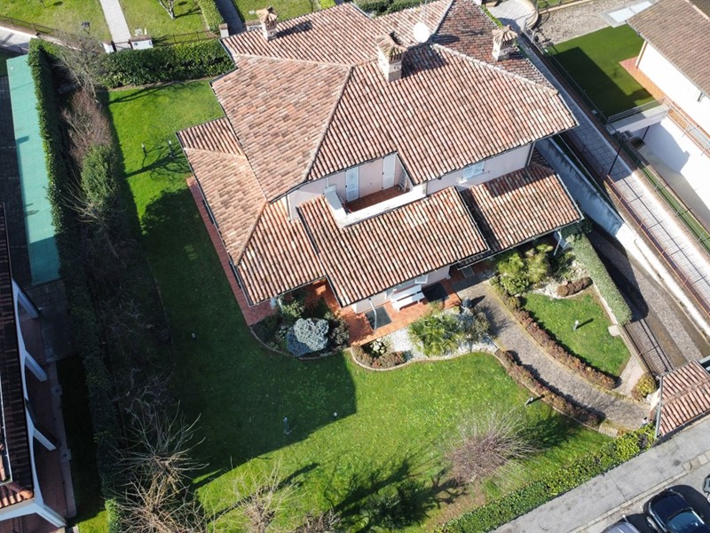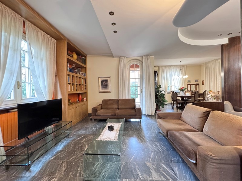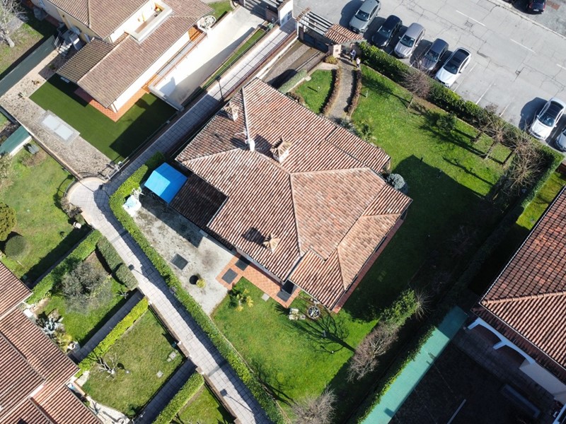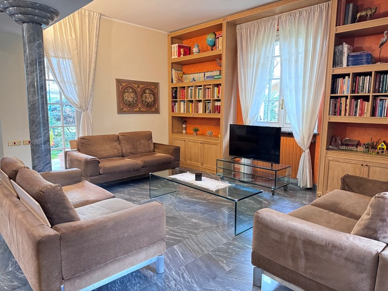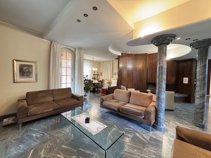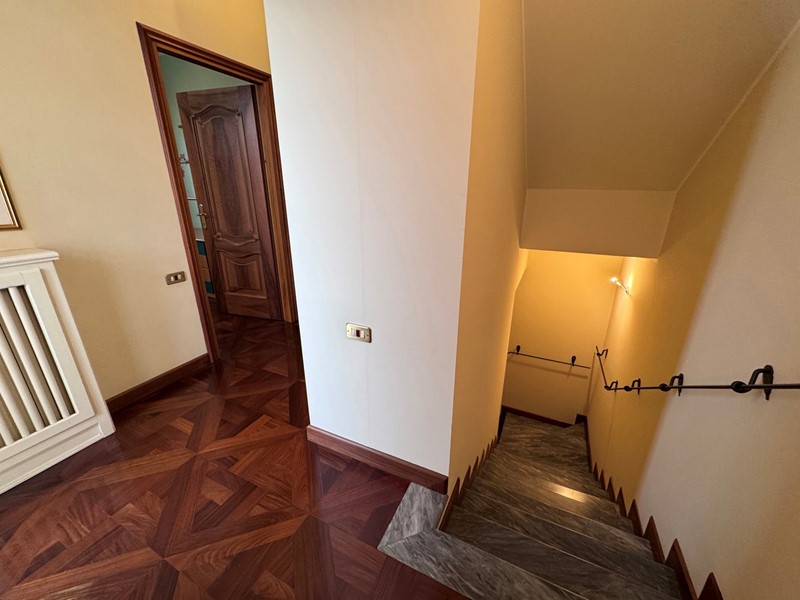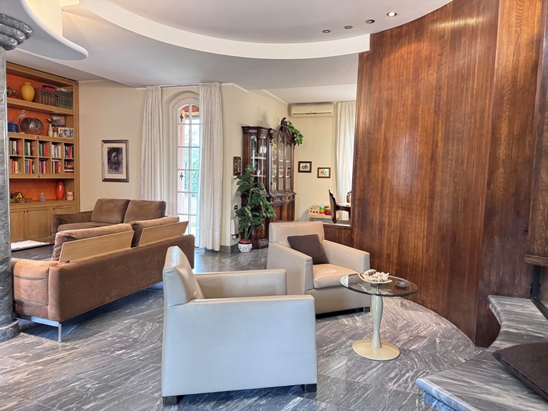 Gli interni della villa sono caratterizzati da finiture di alta qualità, con serramenti in noce tanganica e doppi vetri .