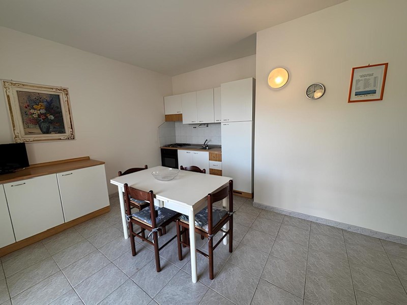 Questo appartamento è caratterizzato da una terrazza. Zona totalmente tranquilla, Lontana dal caos ma che offre come possibilità la spiaggia a pochissimi minuti di distanza, rendendo questa posizione strategica per potersi muovere facilmente. L’appartamento dispone di una camere da letto e un bagno con box doccia; posto auto incluso nel prezzo. Viene ceduto completamente arredato.