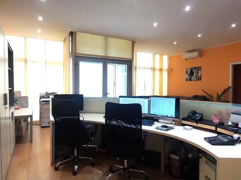 Eccellente ufficio di 4 vani oltre bagno per una superficie di circa 146 mq. su un unico piano, grande visibilità, due posti auto di proprietà e affacci su grandi aree di posteggi gratuiti: l'immobile è inserito all'interno di un più ampio fabbricato che si sviluppa su due piani fuori terra, prevalentemente dedicato ad attività commerciali, direzionali e studi professionali. La collocazione della struttura e la possibilità di facili contatti con tutti i tipi di utenti, consentono di usufruire di un contesto frequentato e attivo, ideale per esercitare attività professionali di vario genere in un ambiente dinamico. L'immobile, con destinazione d'uso ufficio, posto al primo piano e servito da ascensore si sviluppa per tutta l’ampiezza su un unico piano, ed é composto da una grande hall, due grandi uffici, un altro ufficio più piccolo ed un ampio e bellissimo bagno. Ottimo ambiente per lavorare: grandi spazi, ambienti luminosi grazie alle ampie vetrate che garantiscono luce naturale, taglio moderno, funzionale e versatile. Due posti auto esclusivi al piano terra SUBITO LIBERO