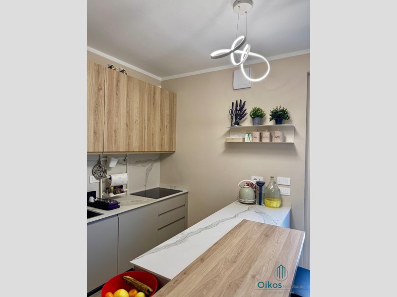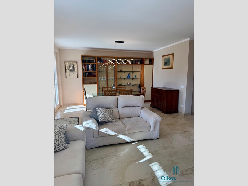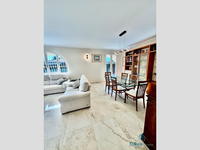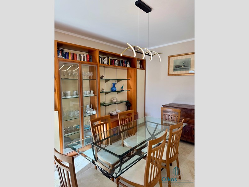L’ingresso si apre su un grande salone luminoso, arredato con gusto e perfetto per accogliere famiglia e amici. Adiacente, troviamo una cucina funzionale e ben attrezzata, pensata per ogni esigenza. Completa il piano una camera singola, comoda e versatile, ideale per ospiti o personale di servizio.