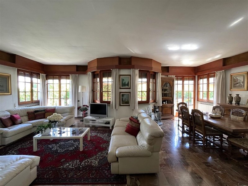 Al piano giorno si trova l'ingresso che conduce al salone doppio, dove si nota subito un'elegante parete semicircolare, che delimita la spaziosa veranda esterna, ideale per pranzi all'aperto e trascorrere piacevolmente momenti 'en plein air'.
