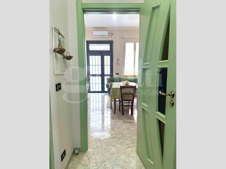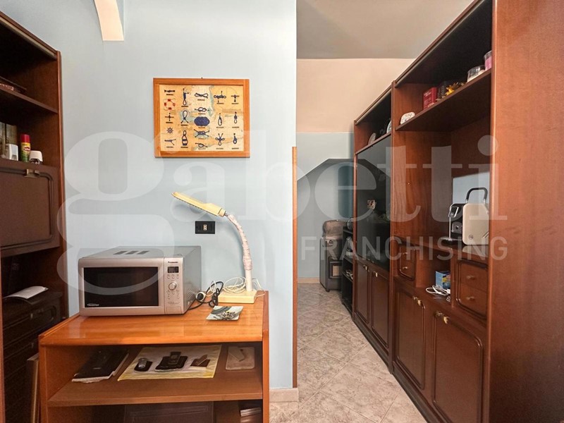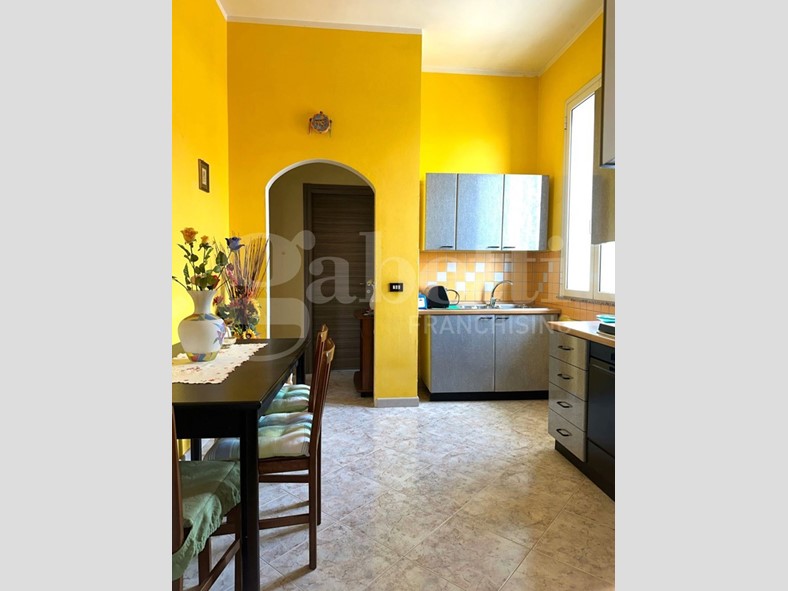 Al piano terra vi è un'ampia cucina/soggiorno a vista, disimpegno, camera da letto matrimoniale, bagno con doccia, ripostiglio, lucernaio ed una camera adibita a studio.