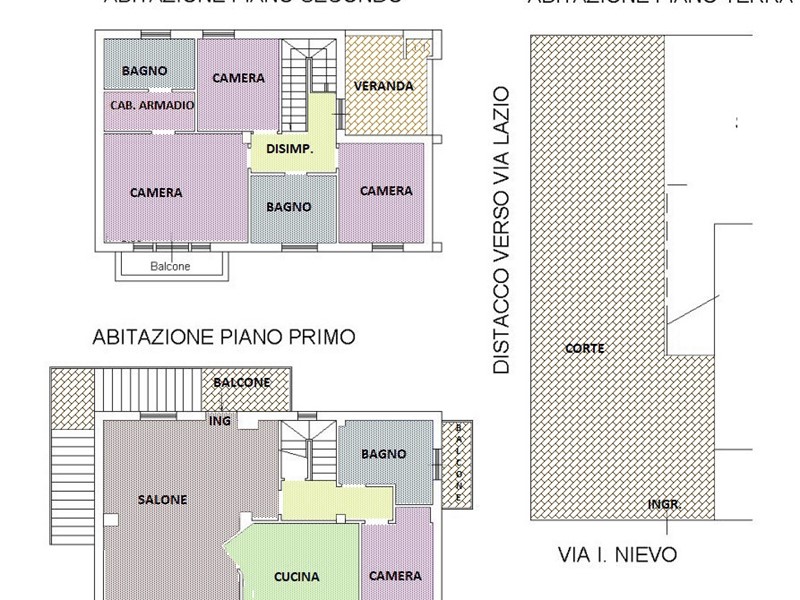 All'ingresso, una scala esterna conduce al primo piano, dove sarete accolti da salone doppio, cucina abitabile con balcone, una camera e un bagno con balcone completano questo piano. Salendo al secondo piano tramite una comoda scala interna, arriviamo nella zona notte così distribuita: camera matrimoniale con bagno privato, cabina armadio, e balcone, due camerette aggiuntive, un ulteriore bagno e un'area palestra rifinita in legno con luminose vetrate completano questo piano. Completa la proprietà una corte privata con ingresso pedonale e carrabile dove troverete un'area con gazebo e possibilità di parcheggiare due macchine.