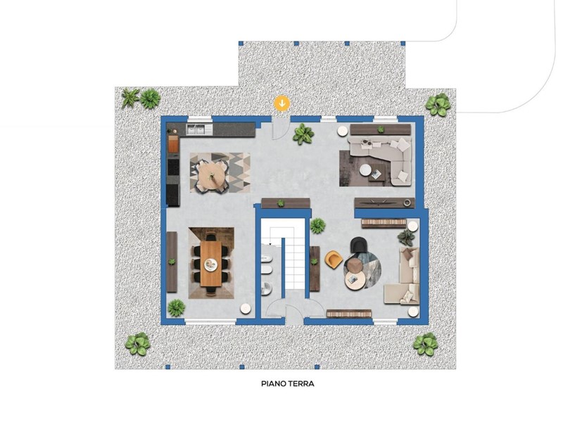 Una soluzione abitativa unica nel suo genere, che offre ampi spazi sia interni che esterni ed una distribuzione funzionale degli ambienti.