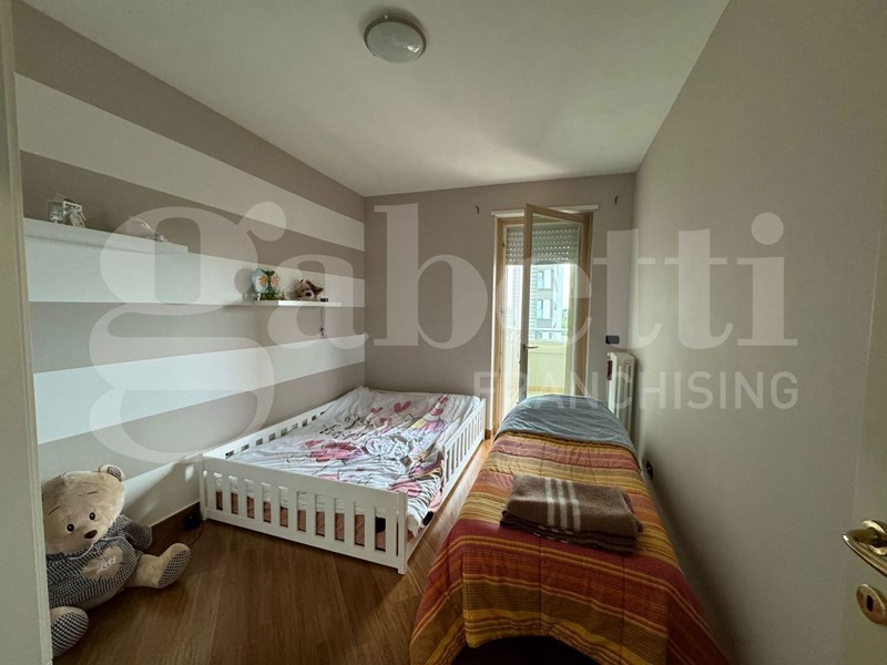Le finiture sono di alta qualità e pensate per garantire il massimo comfort: pavimentazione in gres porcellanato effetto parquet, che dona un tocco di calore e modernità, tapparelle elettriche, zanzariere su tutte le finestre, predisposizione per l'allarme, climatizzatore nel corridoio, videocitofono per maggiore sicurezza e raffinate porte in legno. Il valore aggiunto? Il balcone è stato chiuso con un'elegante vetrata a pacchetto, firmata "Bellevetrate Spa" di Forlì, che assicura isolamento termico e acustico senza rinunciare alla luce naturale.