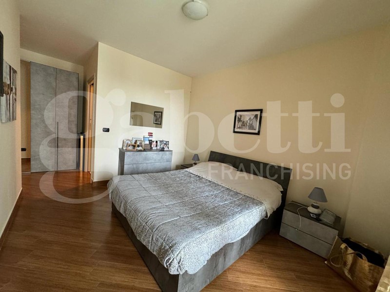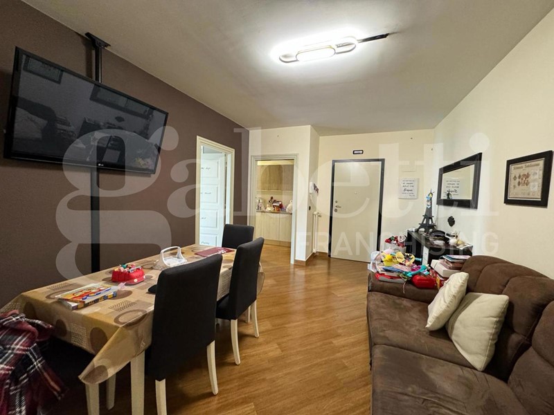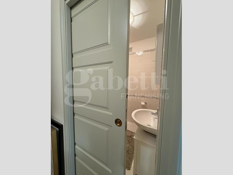 L'ingresso accoglie subito in un ambiente caldo e ben organizzato, con un luminoso soggiorno che si integra perfettamente con la zona pranzo e un cucinino spazioso e funzionale. L'appartamento dispone inoltre di uno studio, ideale per chi lavora da casa, un ampio disimpegno che offre lo spazio perfetto per un pratico armadio a muro, due camere da letto confortevoli e due bagni, di cui uno in camera.