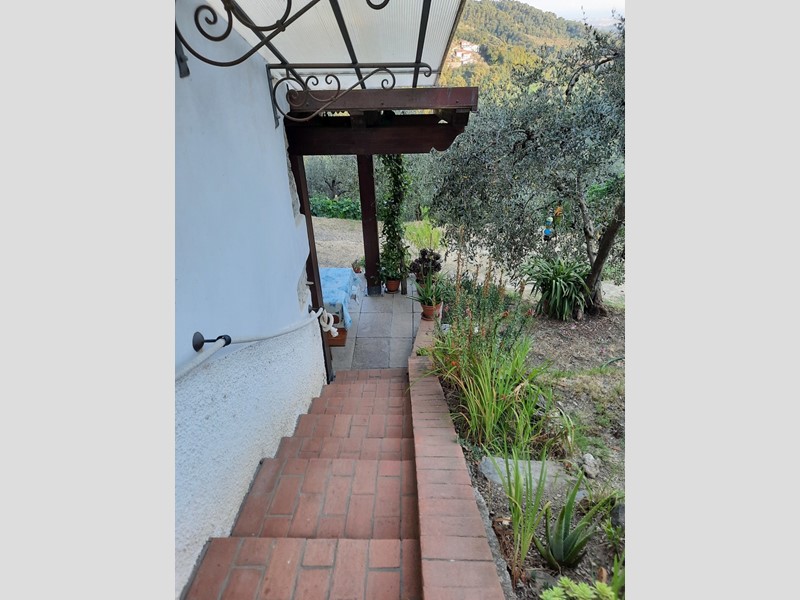 Rustico indipendente in prima collina completamente ristrutturato e dotato di ogni comfort : ingresso da ampia pergola in piccolo soggiorno con camino, cucina abitabile. Al piano superiore camera, bagno. Climatizzato. Completano la proprietà vari annessi uso cantina, garage, ripostigli. Terrazzo. Zona living sotto le piante. Giardino. Terreno coltivato con piante ed olivi per totali mq. 5.200.