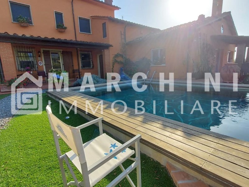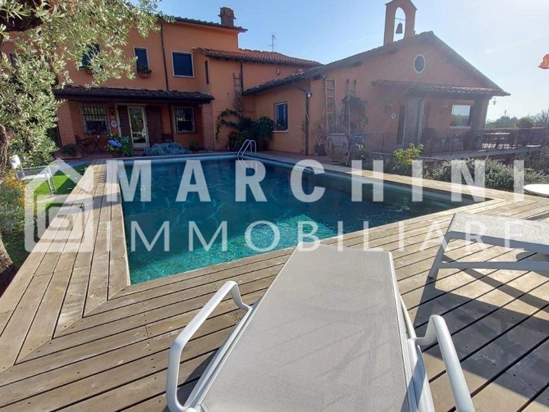 Rif. IA1648 - IN ESCLUSIVA - ZONA LAPPATO - Proponiamo in vendita splendida villa colonica, ristrutturata di recente, immersa nel verde e con vista panoramica. Corredata da piscina, ampio giardino, terreno a olivi e maxi garage con multi parcheggio. E' divisa in due unità abitative pertanto adatta anche a due nuclei familiari. La prima unità al piano terra rialzato si compone di ingresso tradizionale, ampio salone munito di camino centrale e soppalco e ampie vetrate con vista sul paesaggio, limonaia per pranzi all'esterno anche in inverno, cucina abitabile; mentre al piano primo vi sono le due camere matrimoniali, disimpegno, il bagno con antibagno. L' altra unità abitativa invece è composta da ingresso, sala, cucinotto, disimpegno, una camera matrimoniale, da scala interna si accede al piano primo dove troviamo due camere, ripostiglio e un bagno con finestra. Soffitta praticabile con finestre. Le due unità abitativa sono collegate fra loro al piano primo. Gli infissi sono in alluminio anodizzato ed in legno. Intorno alla casa vi è un ampio terreno a ulivi (circa 80). L'immobile è in ottime condizioni di manutenzione, tetto rifatto. Pannelli solari e fotovoltaici. I pavimenti sono in cotto e parquet nell'unità principale, mentre nell'altra unità sono in granito di marmo, ceramica e graniglia. Classe energetica "D"