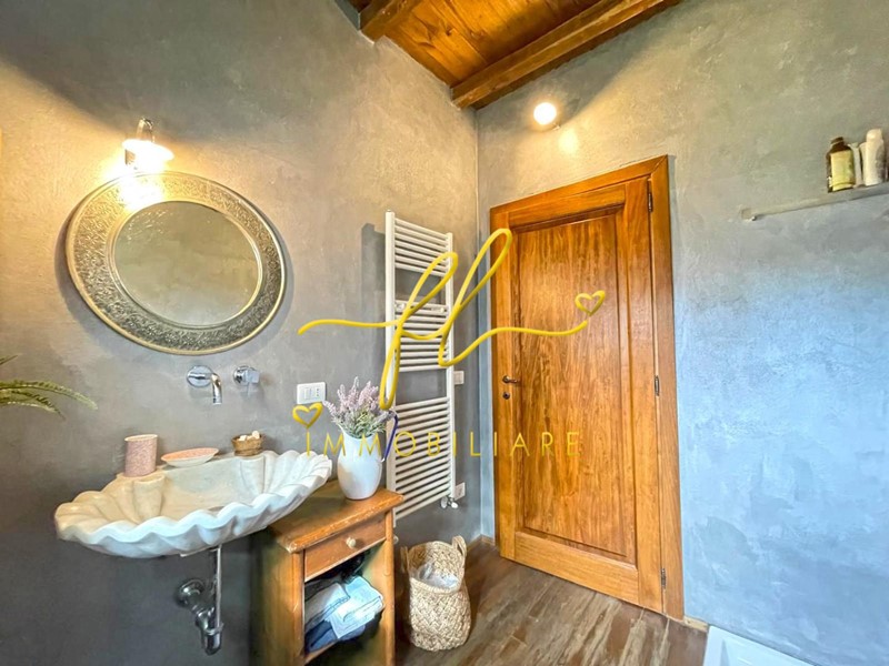 La casa dispone di due ingressi indipendenti: uno dal disimpegno e uno direttamente dalla cucina, che si apre su un incantevole porticato, ideale per cene all’aperto avvolti dai profumi della campagna.