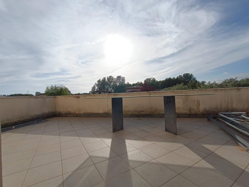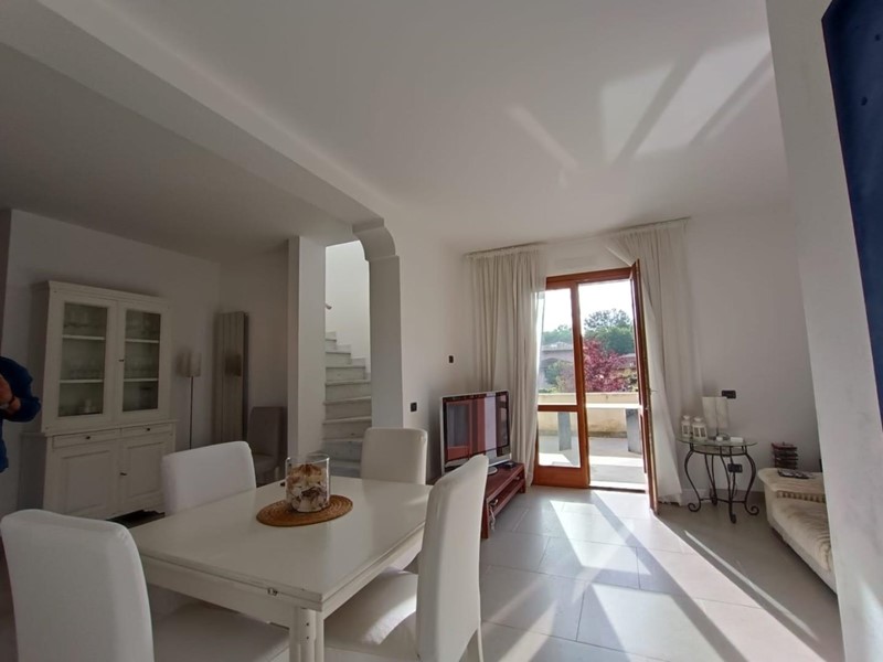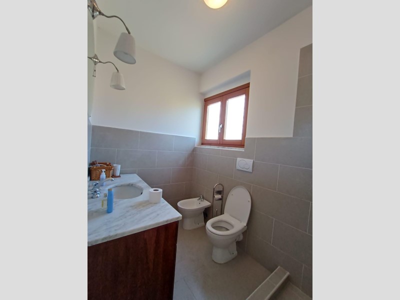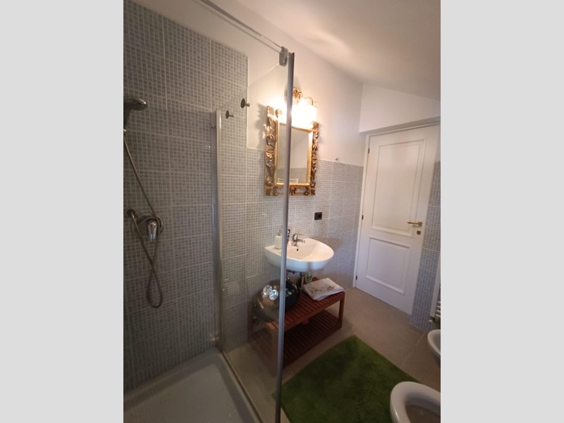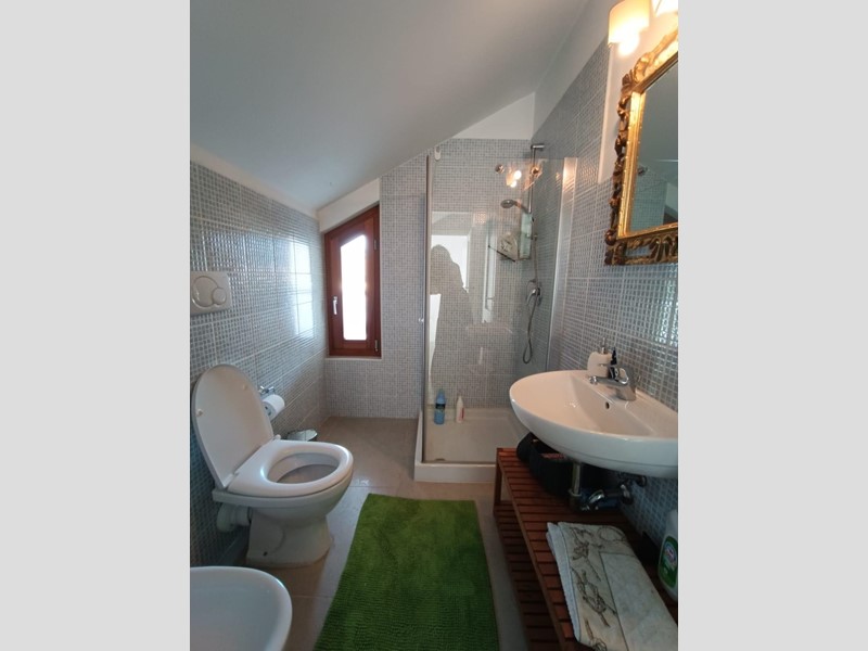 Si vende appartamento di ampie dimensioni in bifamiliare evidenziato in violetto nelle planimetrie allegate. L'immobile è sviluppato su due piani fuori terra e corredato da grande giardino con zona adibita a parcheggio auto. Il piano primo si compone di: ampio ingresso, zona pranzo, soggiorno con accesso alla terrazza dalle generose dimensioni dove è possibile apprezzare un ottimo panorama, cucina abitabile servita da balcone, ripostiglio e bagno. Al Piano secondo mansardato tre camere matrimoniali, due bagni, ripostiglio e terrazza panoramica con zona lavanderia. Aria condizionata, cancello automatico, ampio giardino di pertinenza con esposizione a sud. Classe energetica: G - IPE 184,92