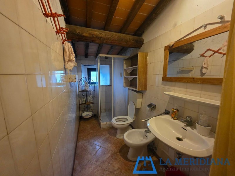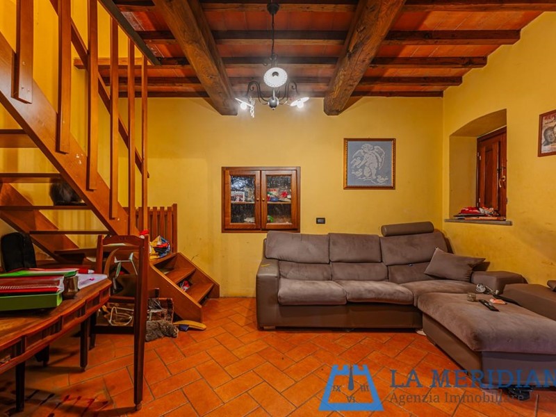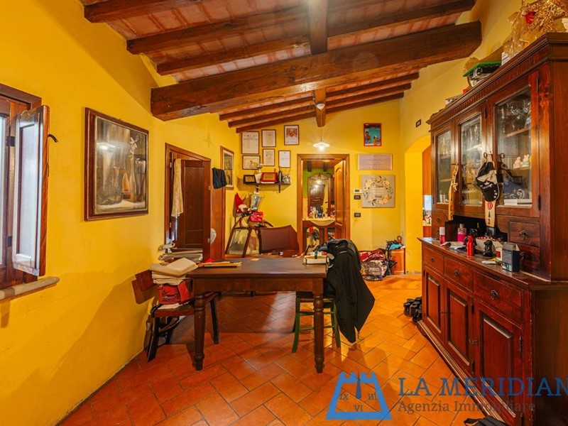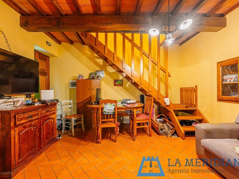 Il tutto in stile rustico toscano, con travi in legno a vista e cotto, oltre scala in pietra.