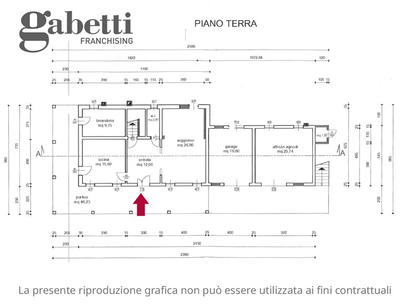 Infatti, sulla sinistra insiste la zona abitabile, mentre sul lato destro vediamo la presenza di un grande garage con magazzino al piano terra e da un ulteriore vano ad uso taverna.