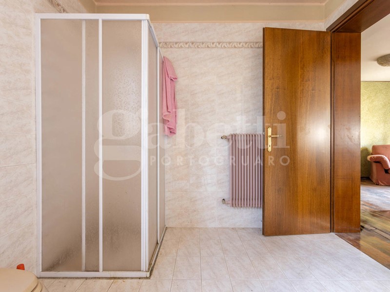 Salendo le scale si giunge alla zona notte, anche qui il disimpegno separa le due camere matrimoniali, la cui metratura può consentirne la costruzione di una terza, al piano, infine, il begno padronale con vasca e doccia.