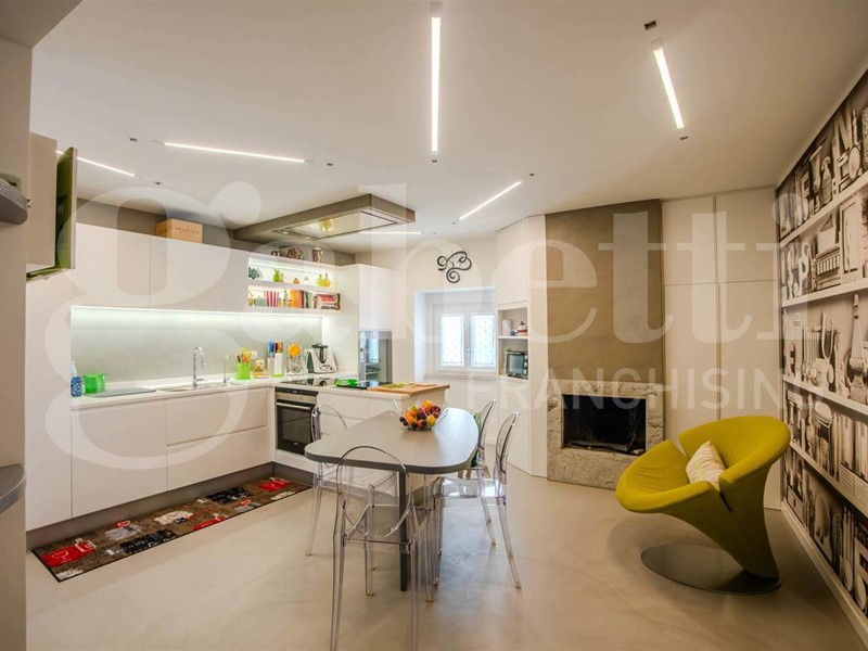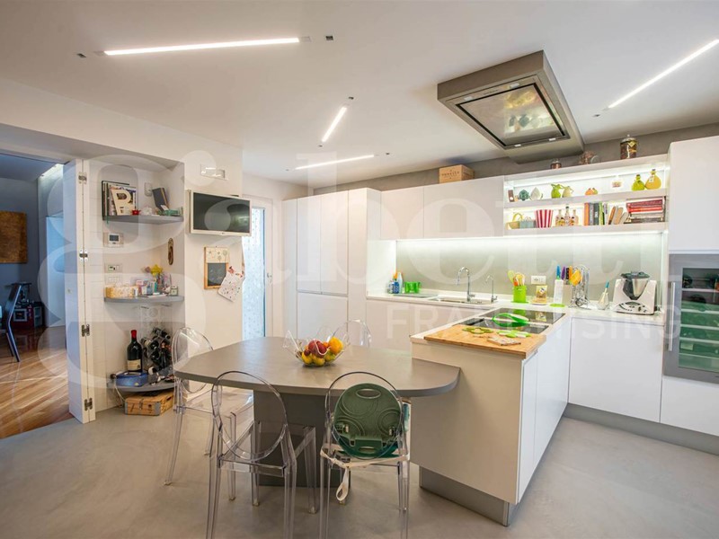 L'immobile, completamente ristrutturato, si distingue per un'ampia e luminosa zona giorno, che include un salone doppio con balcone terrazzato dal quale è possibile ammirare la vista sulla piazza, una cucina spaziosa e ben progettata, che si integra perfettamente con la zona living, un bagno e uno studio, ideale per chi desidera un ambiente riservato per il lavoro.