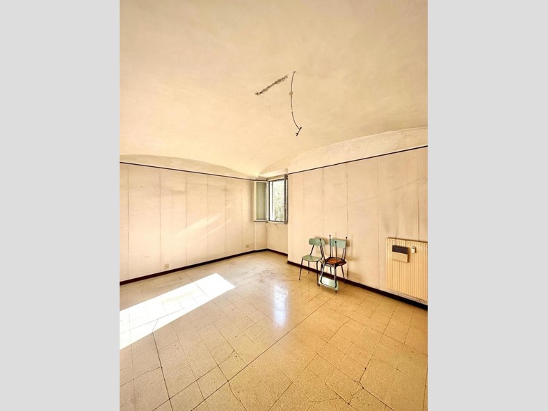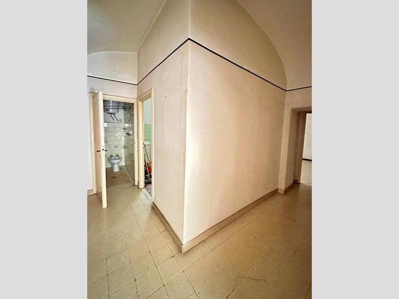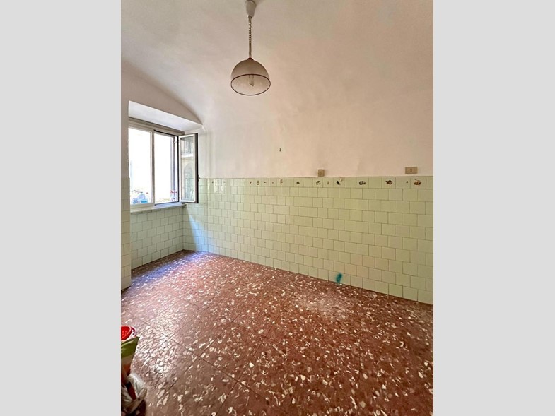 L'immobile è composto da ingresso, soggiorno singolo, cucina abitabile, due ampie camere da letto e un bagno finestrato. Presenta inoltre soffitti a volta e necessita di ristrutturazione. Dotato di impianto di riscaldamento centralizzato, l'appartamento offre comfort e praticità.