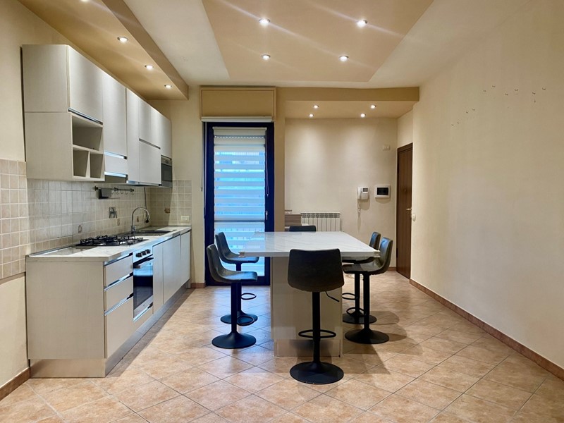 L'appartamento, sito al secondo piano, è composto da un luminoso soggiorno con cucina living, caratterizzato da un elegante controsoffitto con faretti che impreziosiscono la zona giorno, creando un'atmosfera accogliente e raffinata. La cucina è dotata di isola centrale e sedie, ideale per chi ama cucinare e intrattenere gli ospiti.