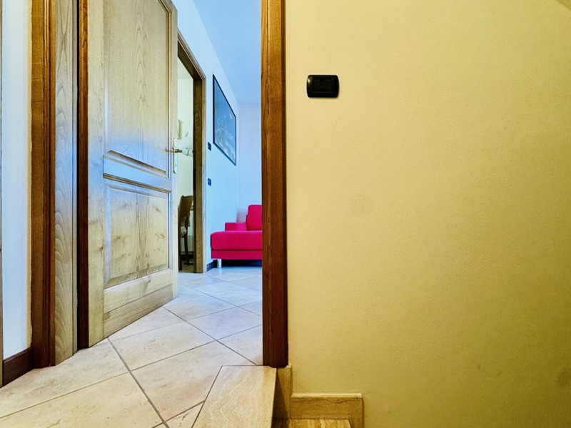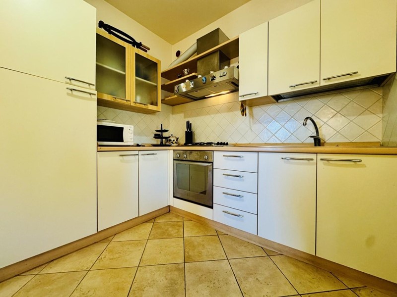 L'ingresso all'abitazione avviene a piano terreno rialzato e più precisamente nel soggiorno. Questo ambiente dispone di una zona pranzo ed un'area TV. La cucina è abitabile e dispone di un balcone tecnico dal quale si accede al giardino.