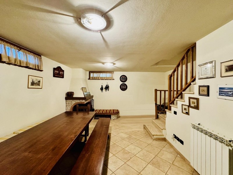 Il piano semi-interrato della villetta ospita una taverna con camino. Questo piacevole spazio è occupato da una generosa sala pranzo (con predisposizione per una seconda cucina) oltre che una camera-studio ed un ripostiglio.