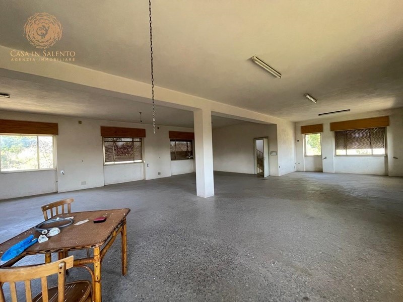 VENDESI a Presicce-Acquarica, località Presicce, un locale artigianale più servizi, di circa 440 mq disposto su due livelli. Il fabbricato insiste su un lotto di terreno di circa 14.000 mq, di cui 7240 mq circa facenti parte del Comune di Presicce-Acquarica e 6800 mq circa facenti parte del Comune di Salve. All’interno del terreno, insite un antico fabbricato diruto della copertura di circa 210 mq con volte a stella e antico camino. Piccolo borgo in provincia di Lecce, Presicce sorprende per i siti di grande valore artistico del centro storico e per i tanti frantoi sotterranei. Il luogo è un concentrato di palazzi signorili, chiese, case settecentesche e masserie rinascimentali. Per la presenza di un gran numero di frantoi, il borgo antico è conosciuto anche come “Città degli ipogei”. A pochi km dal centro, in posizione strategica e precisamente su una strada provinciale di forte passaggio turistico che collega Presicce-Acquarica a Santa Maria di Leuca, questo fabbricato ha tutte le potenzialità per diventare un centro turistico-alberghiero, sportivo, ecc. Ottimo investimento. C.E.: “G”.