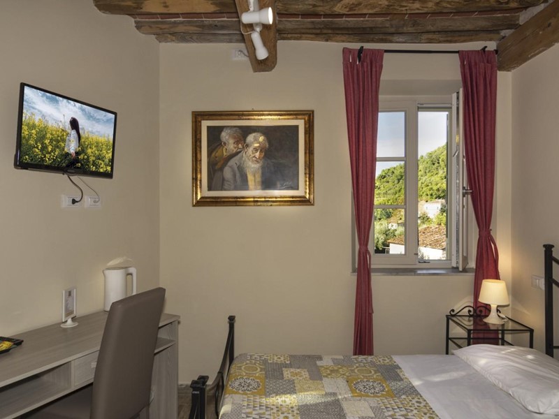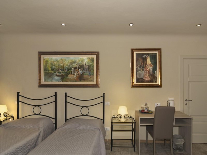Il primo piano è composto da due camere matrimoniali, una camera singola e due servizi; al piano secondo due camere matrimoniali di cui una provvista di cucinotto, una camera singola e due servizi.