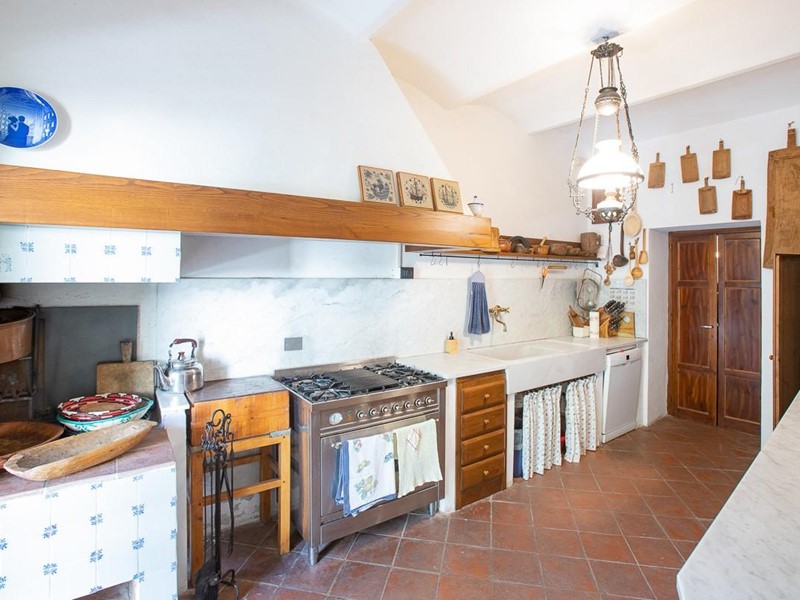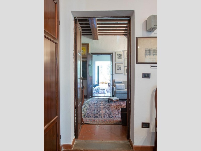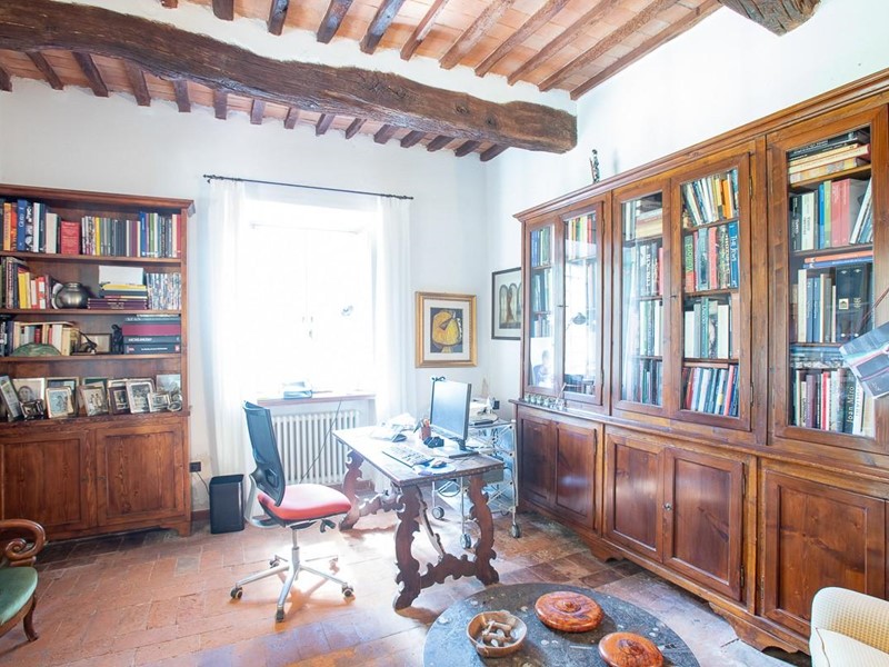 Attualmente la proprietà si compone al piano terra di una prima zona di accoglienza, soggiorno con zona ricevimento attigua e accesso al porticato, cucina abitabile con sala pranzo in adiacenza e cantinetta, camera con bagno, studio, e bagno per gli ospiti completano il piano.