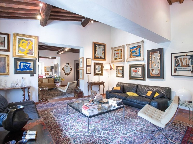 Il piano superiore accessibile da vano scale originali è stato adibito alla parte giorno di rappresentanza con soggiorno triplo con annessa la loggia a vetri di oltre 100 mq. pensata e utilizzata per feste di famiglia o con amici, una grande cucina, una sala pranzo, studio e bagno completano il piano.