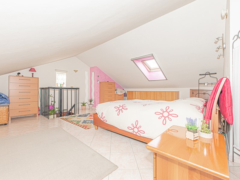 Il sottotetto, collegato sia internamente che esternamente, offre ulteriori 34 mq di spazio versatile, ideale come studio, zona relax o per creare ambienti aggiuntivi.