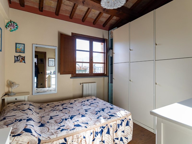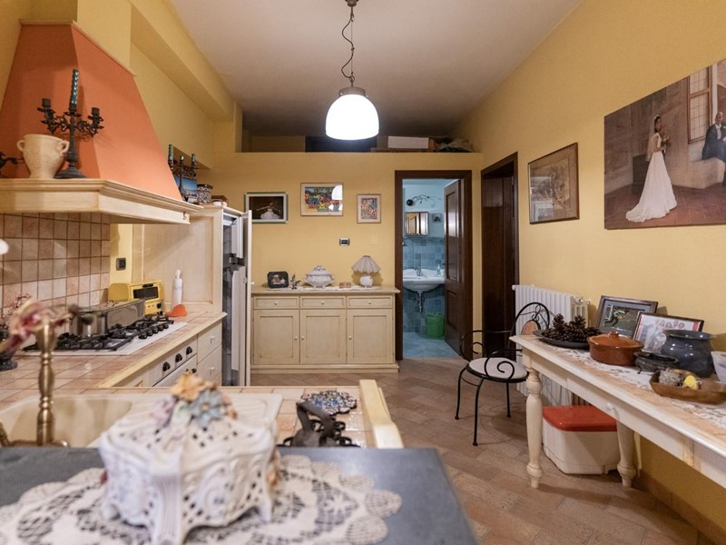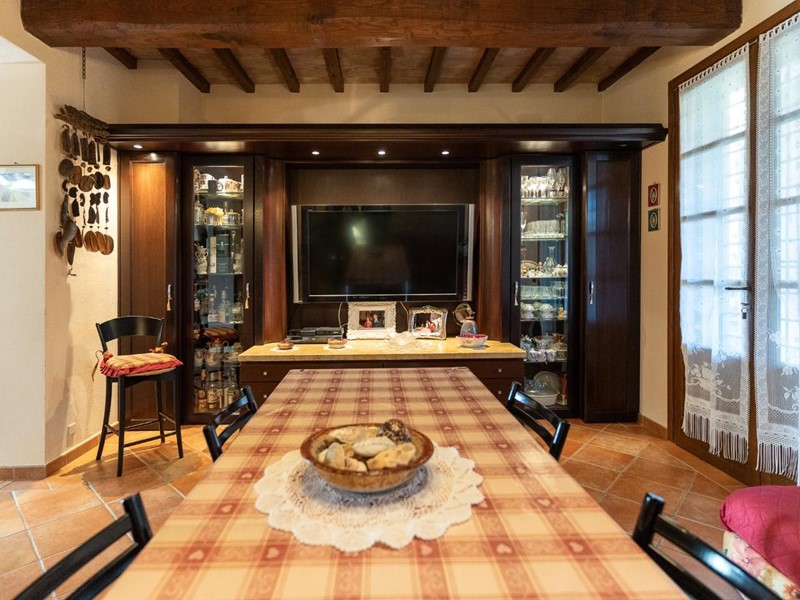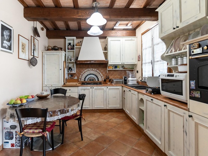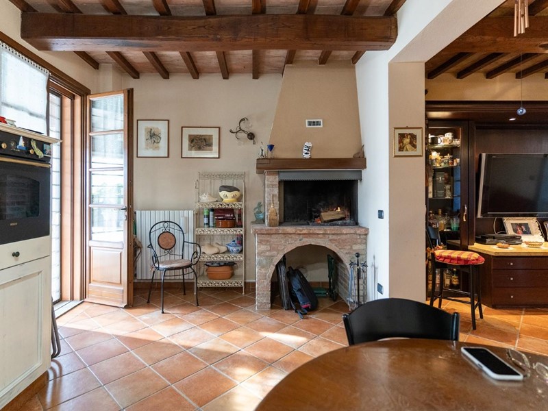 Cucina con camino. Travi in legno. Parquet nelle camere.