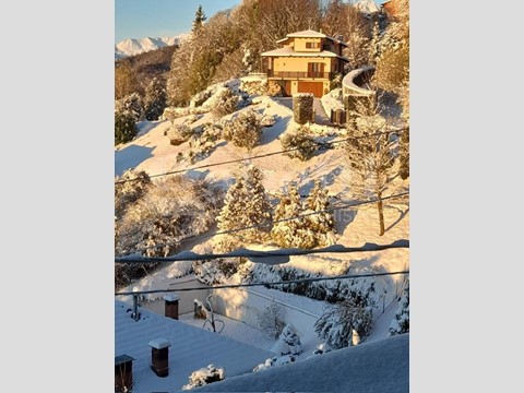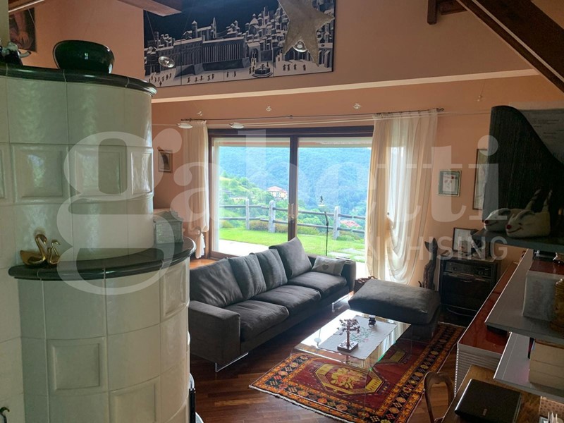 Sulle prealpi biellesi a circa 750 metri di altezza in posizione veramente panoramica con vista mozzafiato sulla pianura fino a Novara, Milano ed alle Alpi Marittime, immersa nella quiete della natura ma a breve distanza dai servizi essenziali, a circa un'ora da Torino e Milano e poco distante dall'Oasi Zegna e dalle piste da sci, proponiamo in vendita splendida villa indipendente circondata da 4000 mq di terreno, costruita nel 2003 con particolare cura nei minimi dettagli e composta da ingresso, salone (di mq 40 circa) con stube Thun autentica , una moderna cucina a vista professionale perfettamente attrezzata, 2 camere, bagno, 2 porticati, ampio balcone e bellissima scala in legno che conduce al soppalco adibito a studio e alla camera matrimoniale con cabina armadio