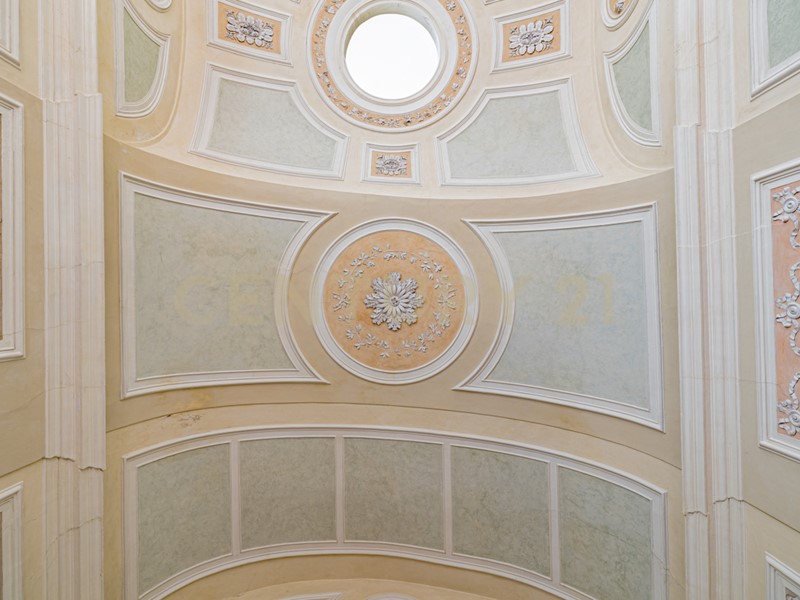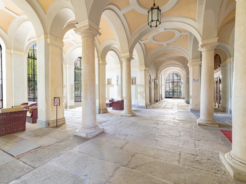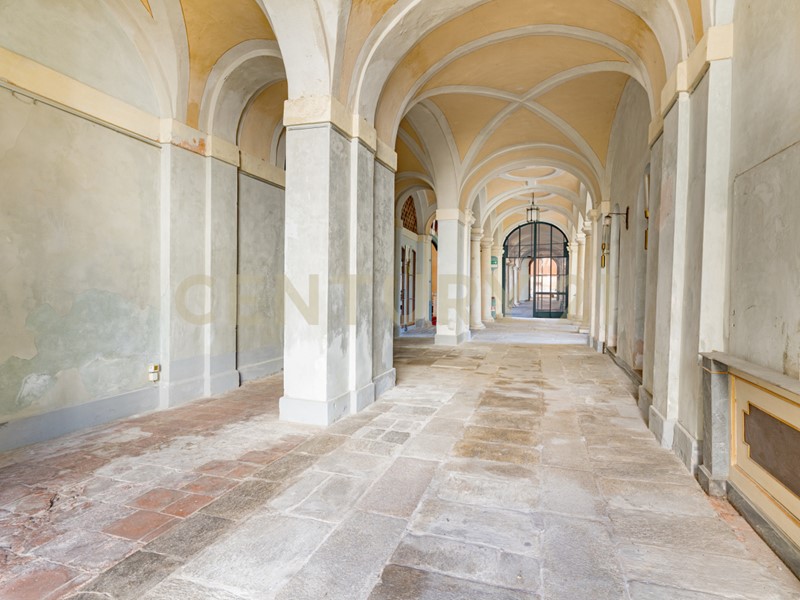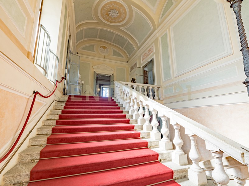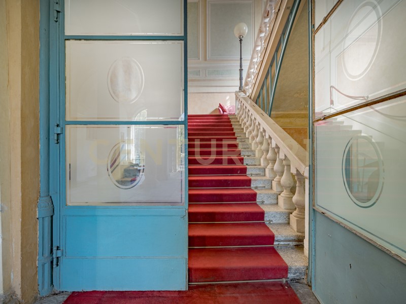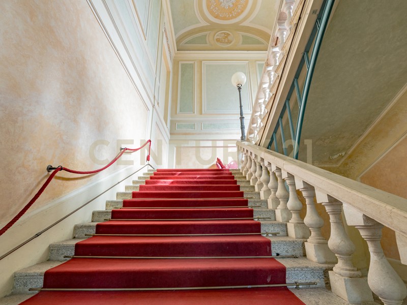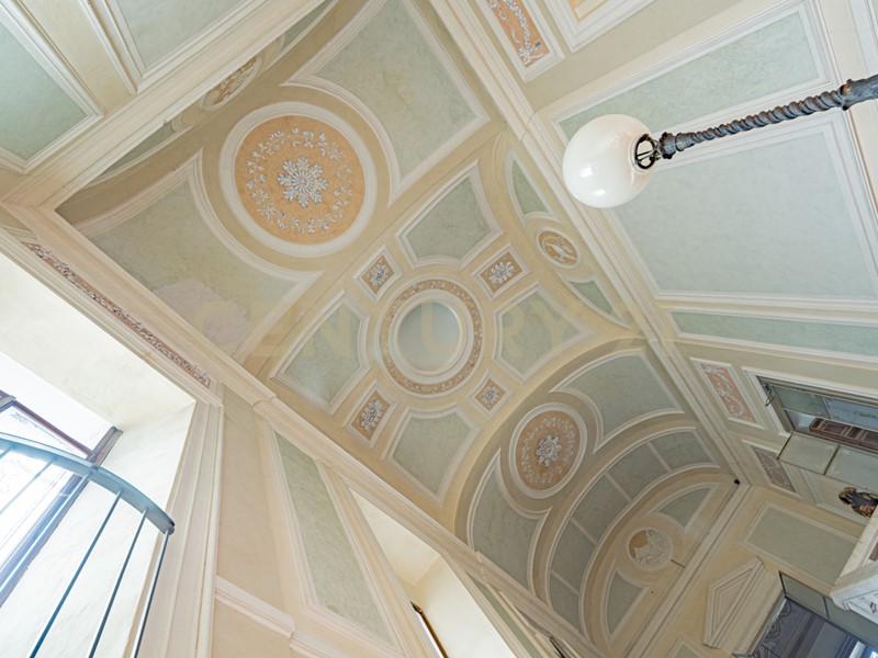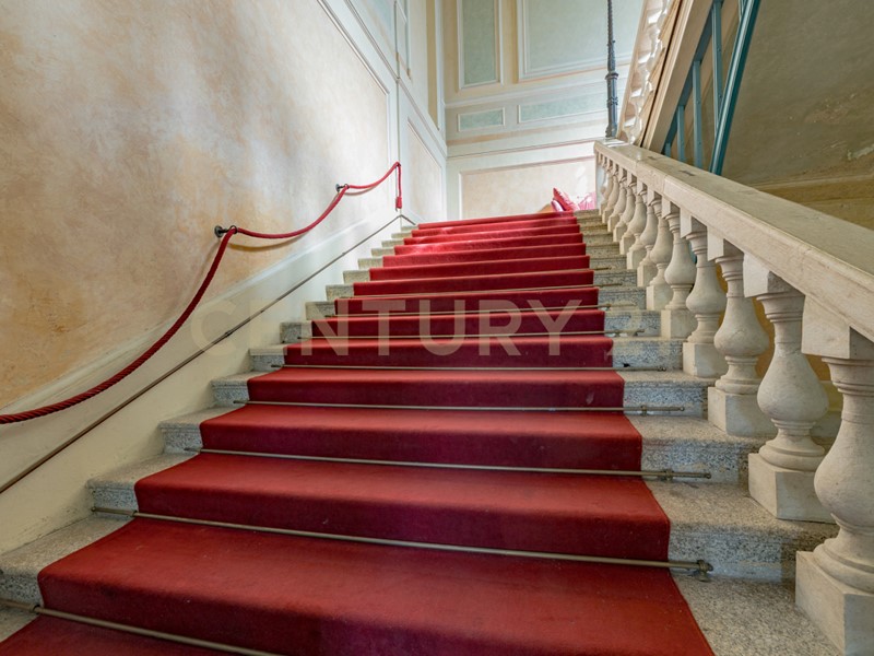 L’imponente facciata ottocentesca, caratterizzata da un elegante bugnato leggero al piano terra e da ampie finestre con frontoni decorati al piano nobile, introduce a un maestoso androne che conduce a una suggestiva corte porticata su due lati. Da qui, un imponente scalone in marmo accompagna ai piani superiori, dove si susseguono ambienti di rara bellezza.